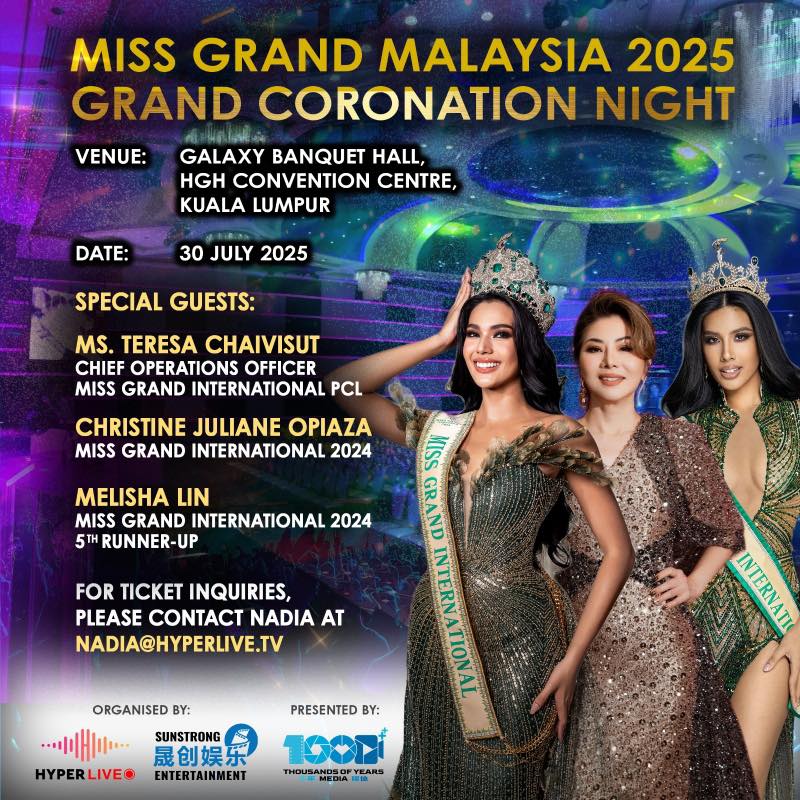 Join us for one of the most anticipated pageants of the year – the Miss Grand Malaysia 2025 Grand Coronation Night, happening at the stunning Galaxy Banquet Hall, HGH Convention Centre, Kuala Lumpur!